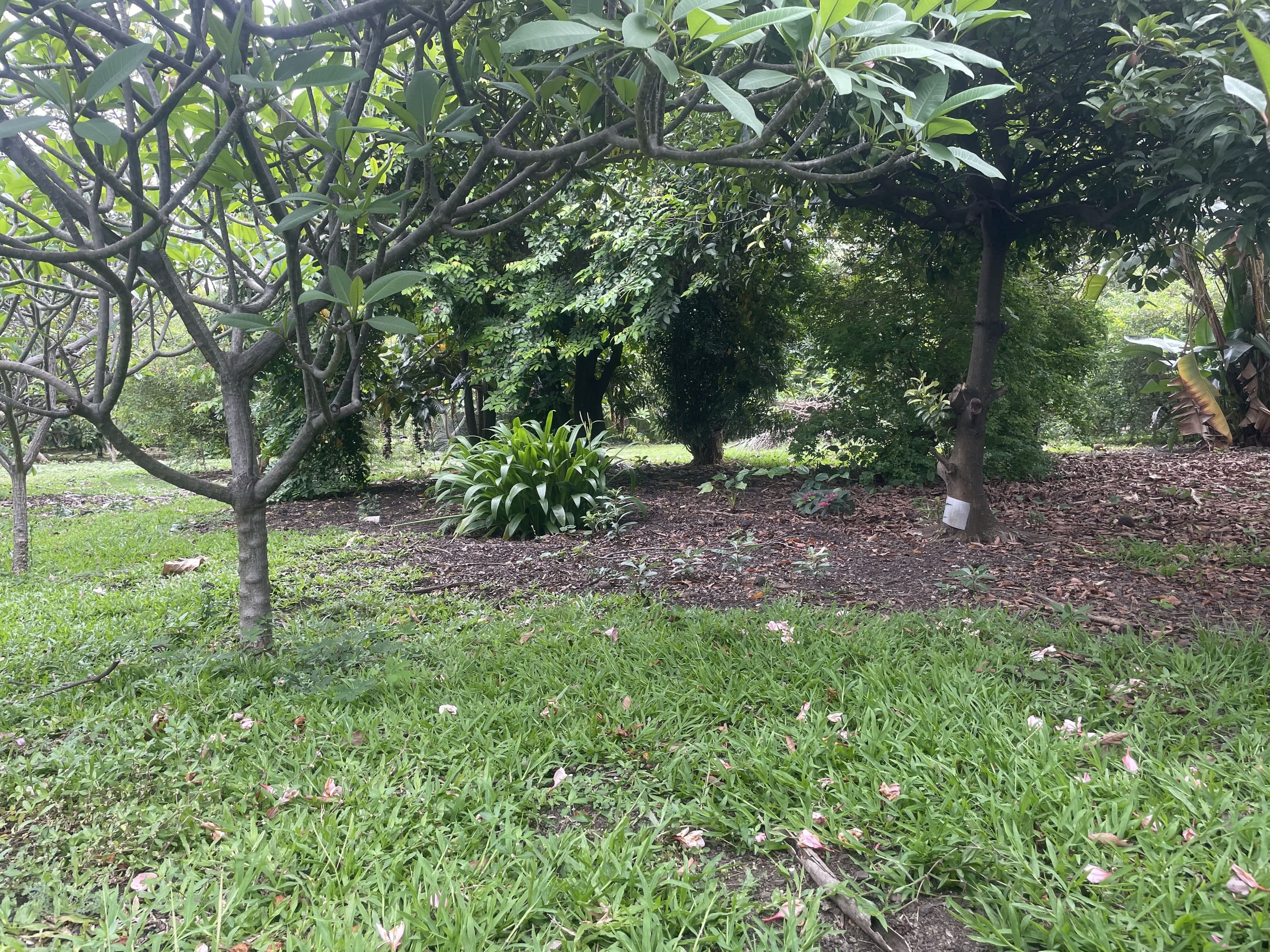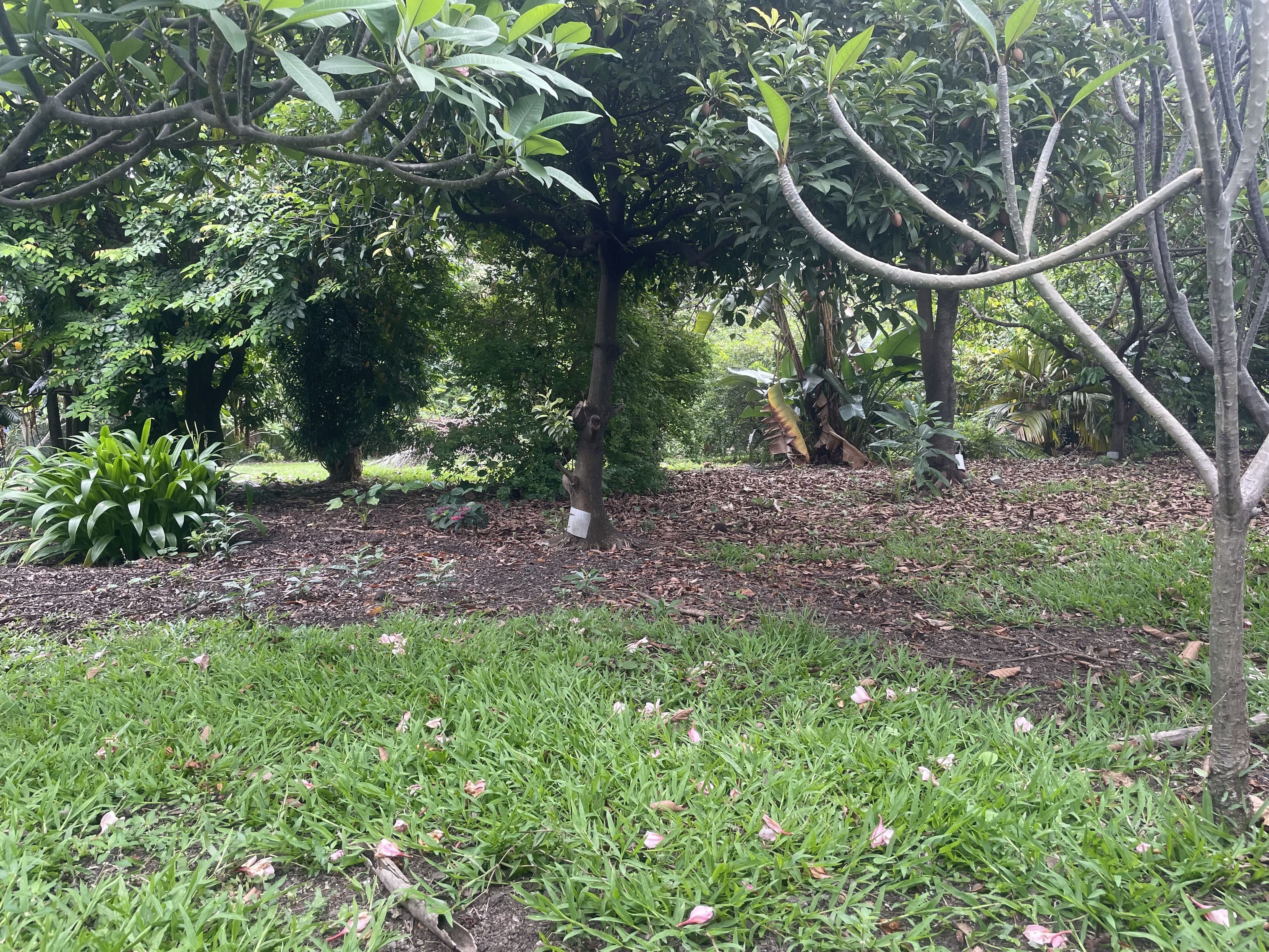 manguiers (Trésor, Papa Gros, Sabot, Opureva, Raoulx), macadamia, tamarin, ramboutan thaï rouge et jaune, cacaoyer (rouge et orange), prunier du gouverneur, canistel (arbre à œuf), carambolier, goyavier, cœur de bœuf, pamplemoussier, avocatier (18 variétés), jaboticaba, cerisier du Brésil, abricotier pays, logan, mûrier, pommier étoile, sapotier, pomme cannelle, manioc, quatre-épices, sauge…