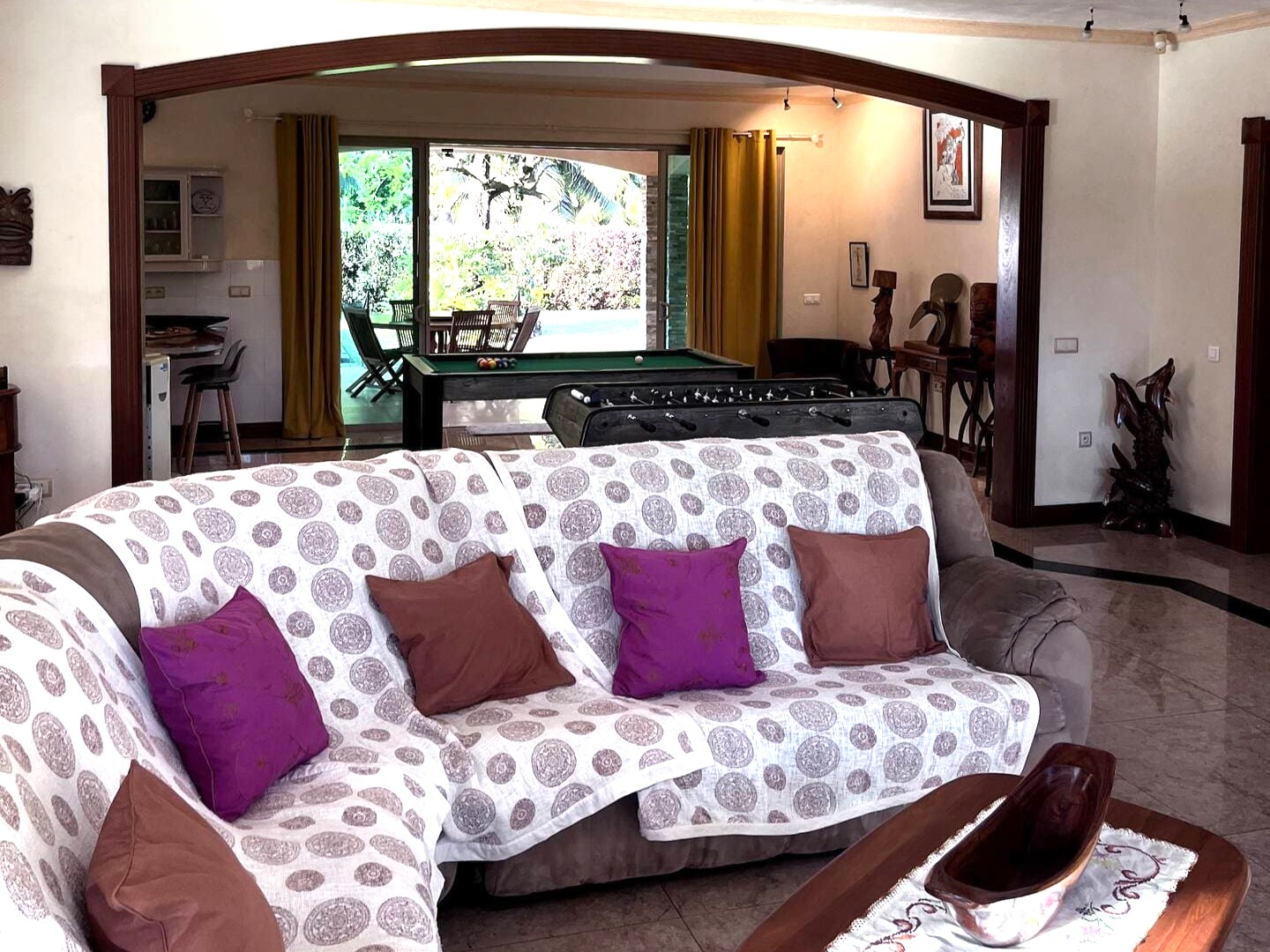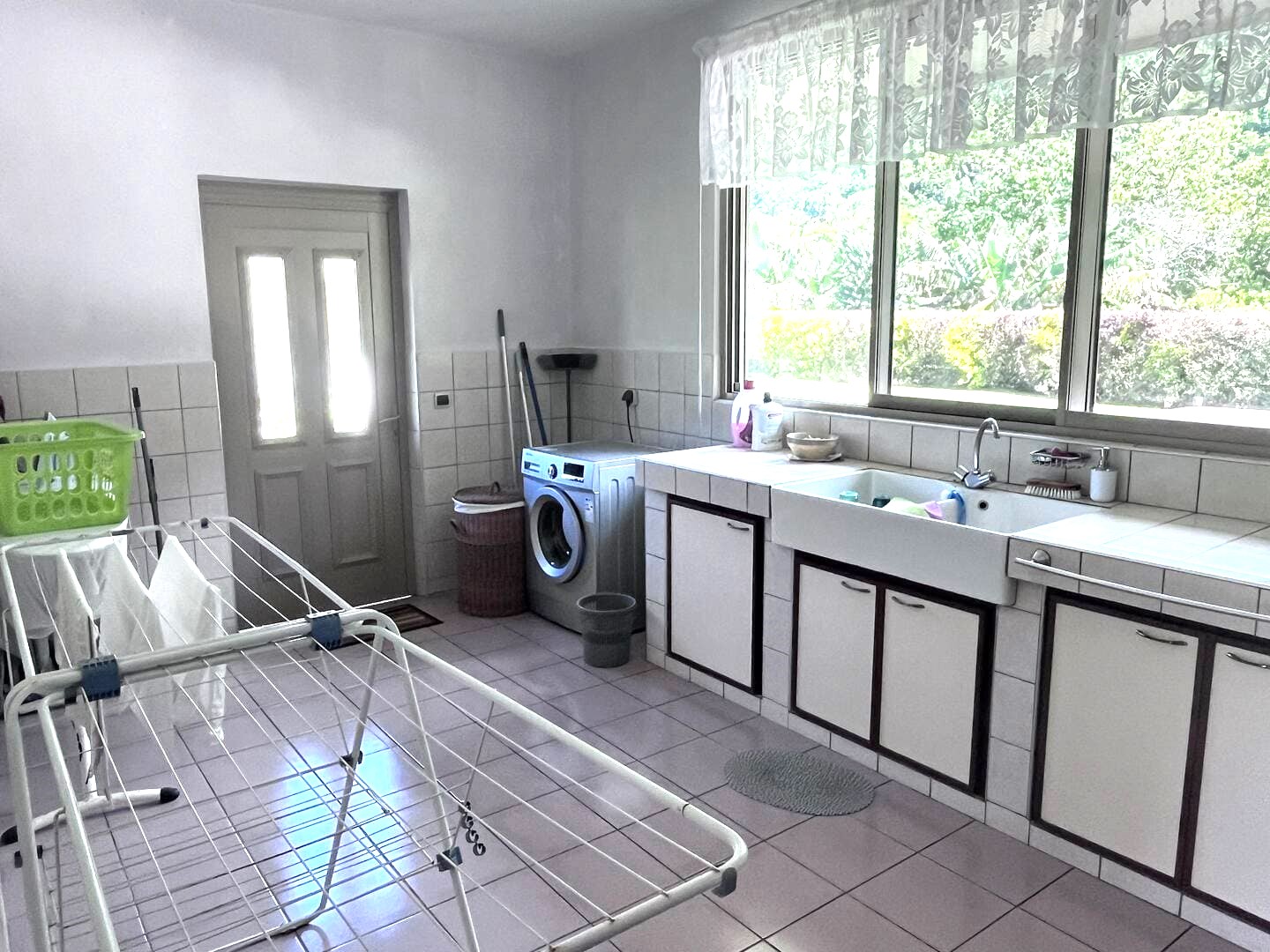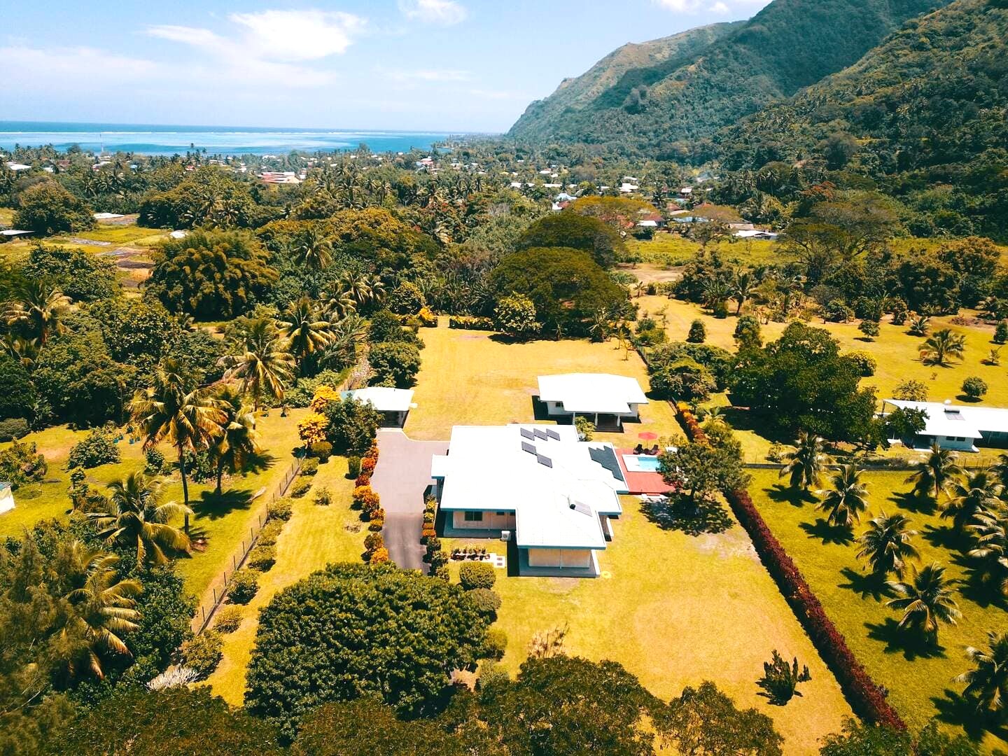 Située dans un quartier familial et calme à Papara, cette propriété offre un cadre de vie rare, entre nature et confort, sur un terrain plat de 7 000 m².