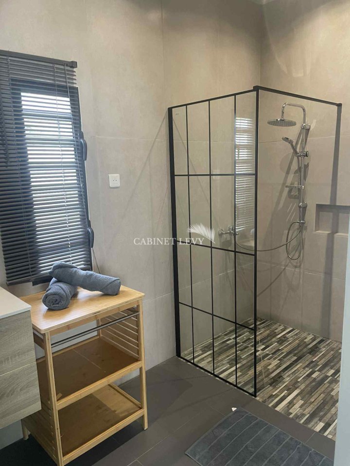meublée et équipée, sur un terrain clôturé de 1 160 m² côté montagne, dans un environnement calme.